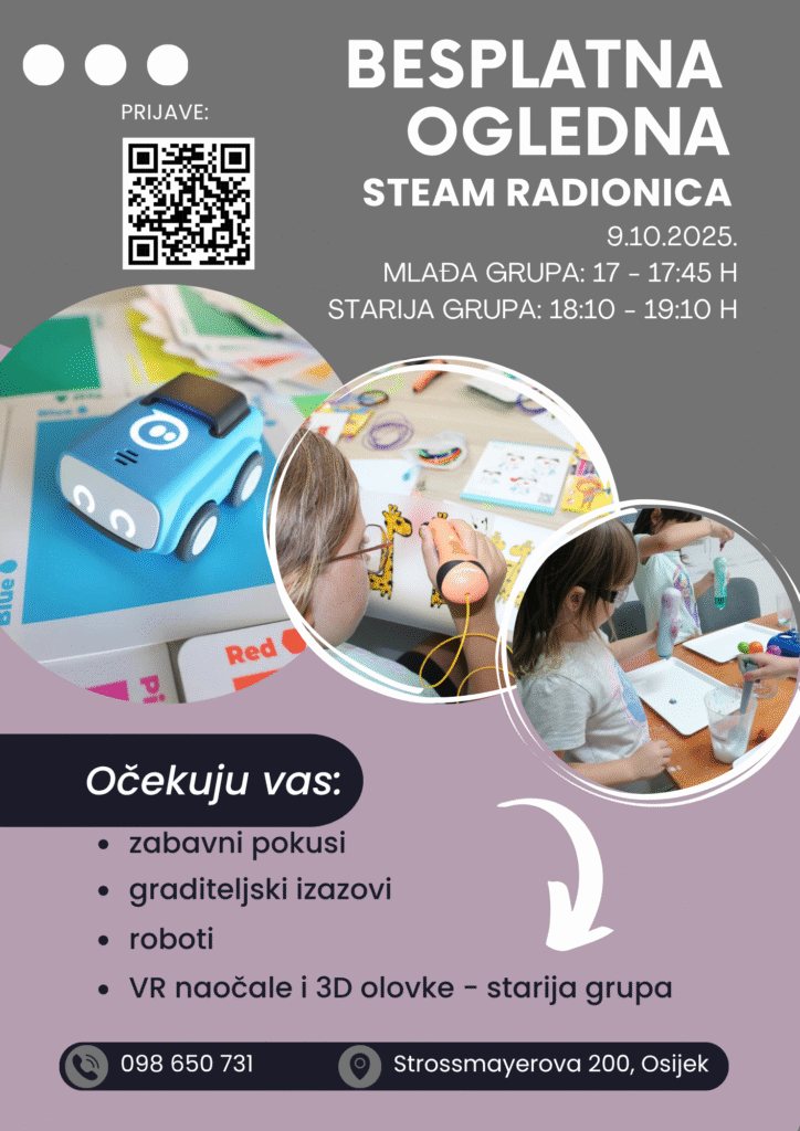 Dodatne informacije na: steamcentarosijek@gmail.com, 098 650 731 ili putem društvenih mreža.