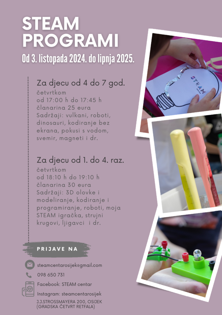 Za sve detaljnije informacije o uključenju djece u program možete nam se obratiti putem e-pošte info@steam-centar.hr ili putem društvenih mreža.